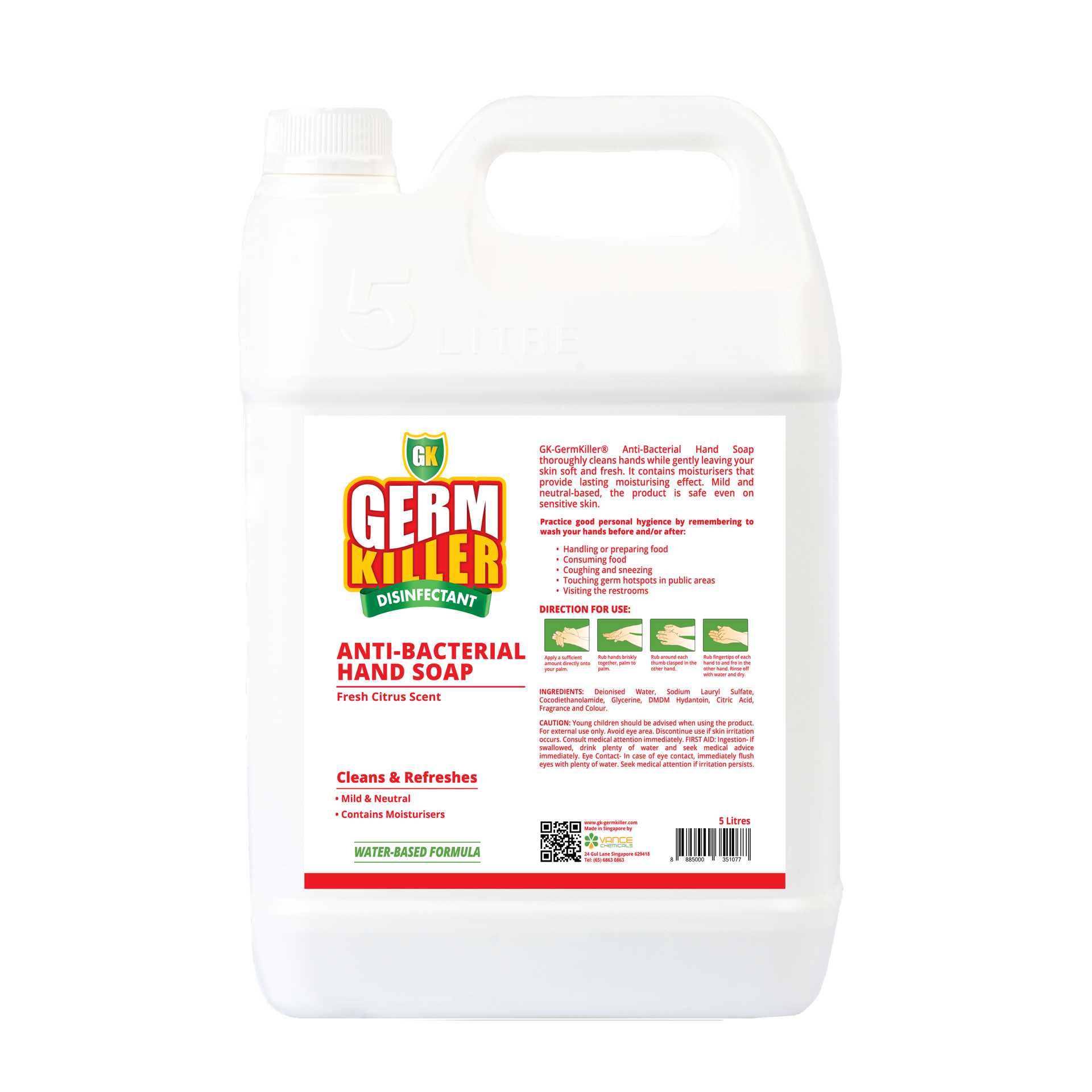GK-GermKiller Anti-Bacterial Hand Soap™ thoroughly cleans hands while gently leaving your skin soft and fresh.