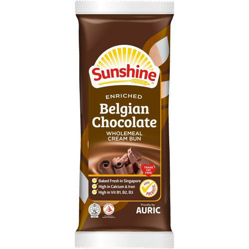 GB -B- SUNSHINE BELGIAN CHOCOLATE WHOLEMEAL CREAM BUN 65GM (Production day: Mon, Wed, Fri)