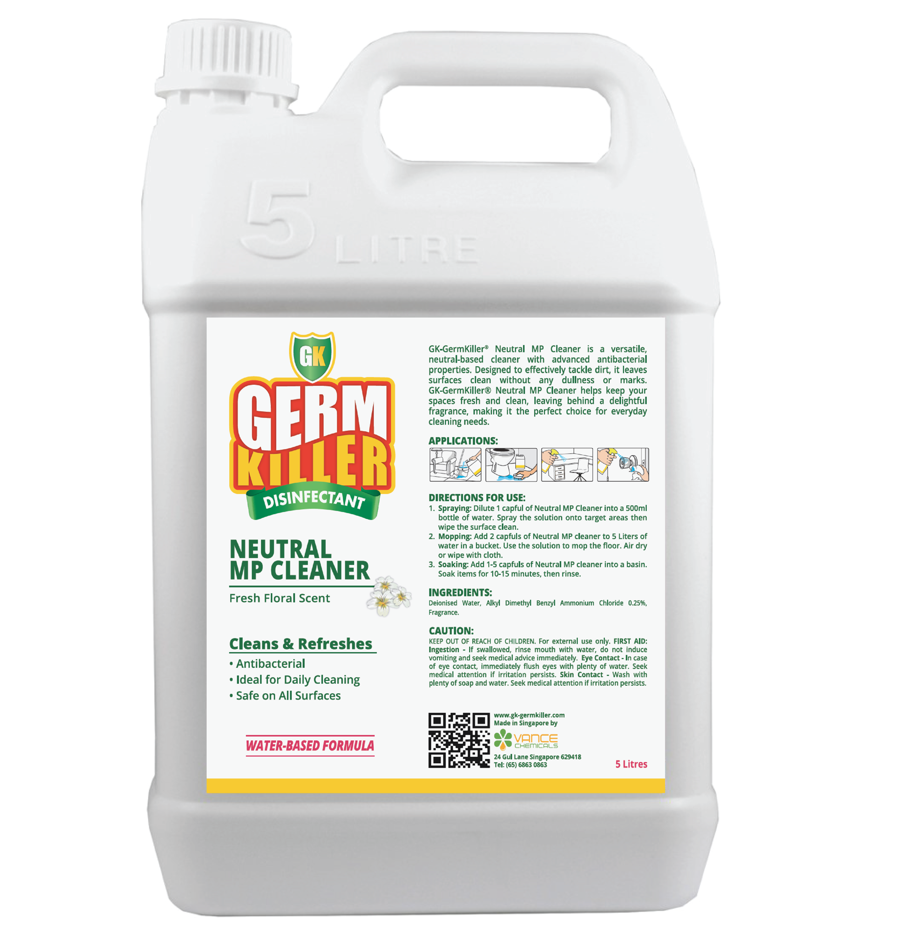 Designed to effectively tackle dirt, it leaves surfaces clean without any dullness or marks. GK-GermKiller® Neutral MP Cleaner helps keep your spaces fresh and clean, leaving